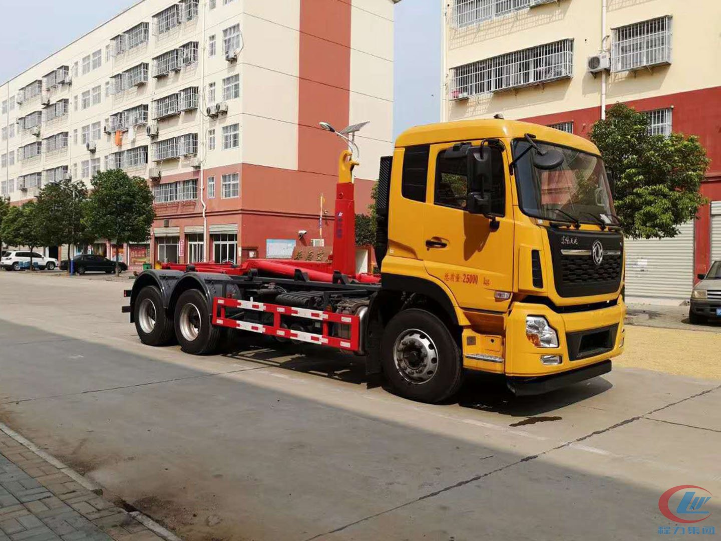 • 国六东风天龙25吨后双桥钩臂式垃圾车