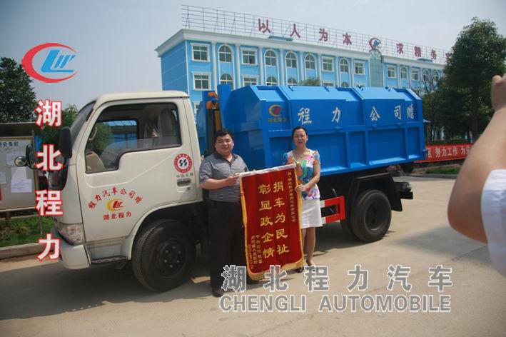 5月29日上午,尊龙凯时公司支持环卫事业,赠送一台小霸王拉臂式垃圾车及一批垃圾斗给随州市府河镇政府。公司总经理程阿罗说:“寻根节马上就要到了,我们一定要擦亮随州城市的名片。”
