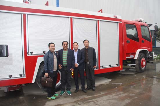 柬埔寨国家安全部部长一行的领导们,对我们尊龙凯时公司的生产的115台庆铃五十铃泡沫消防车产品感到非常的满意