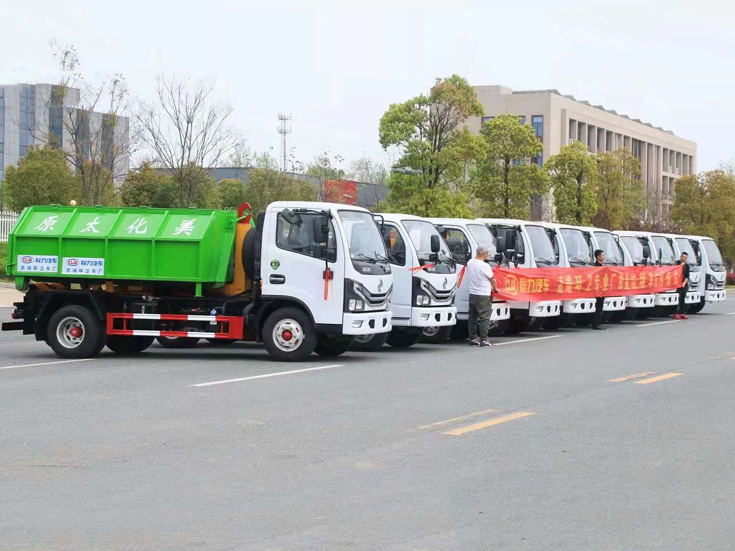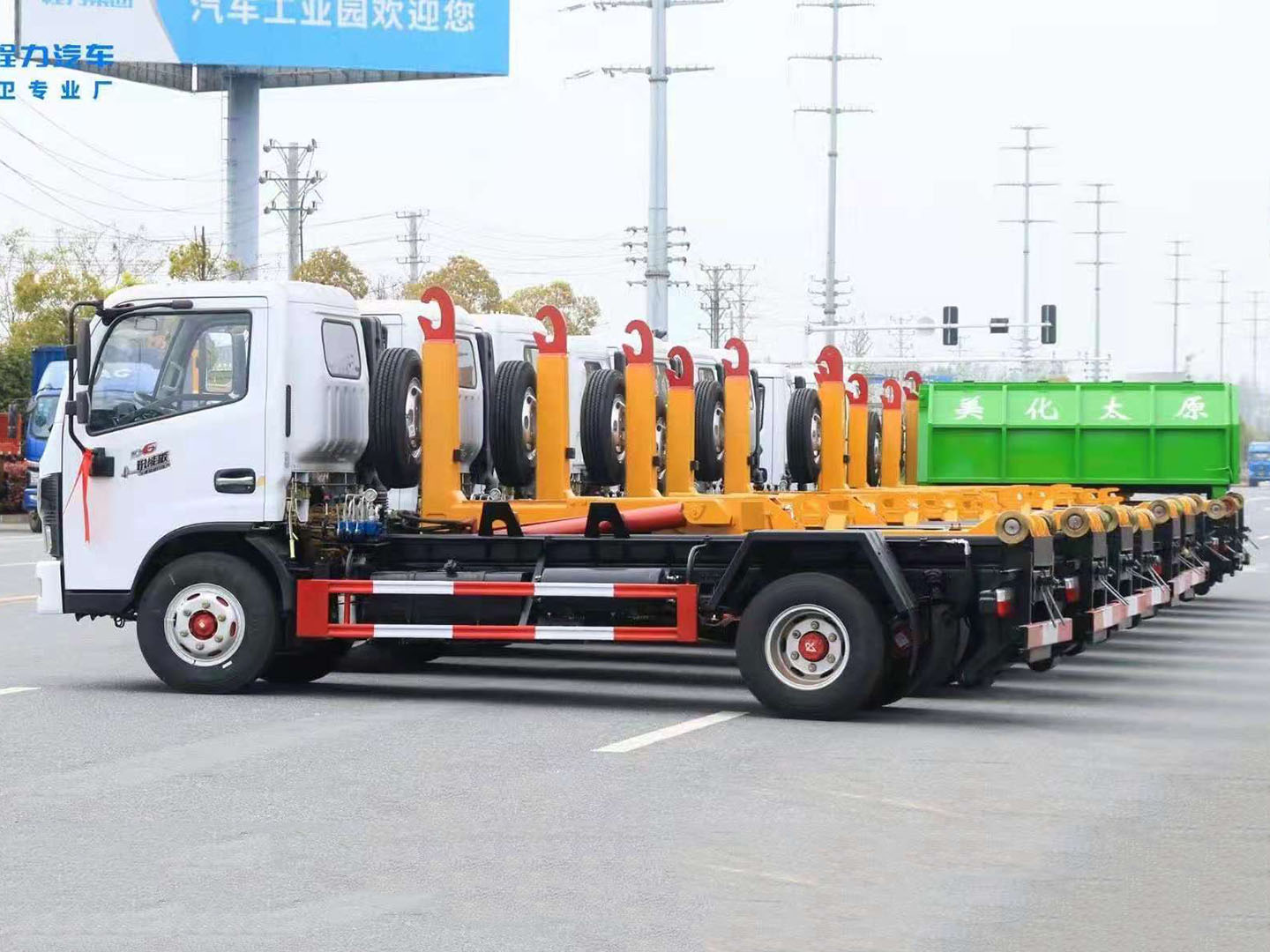 尊龙凯时集团东风多利卡勾臂垃圾车批量发车